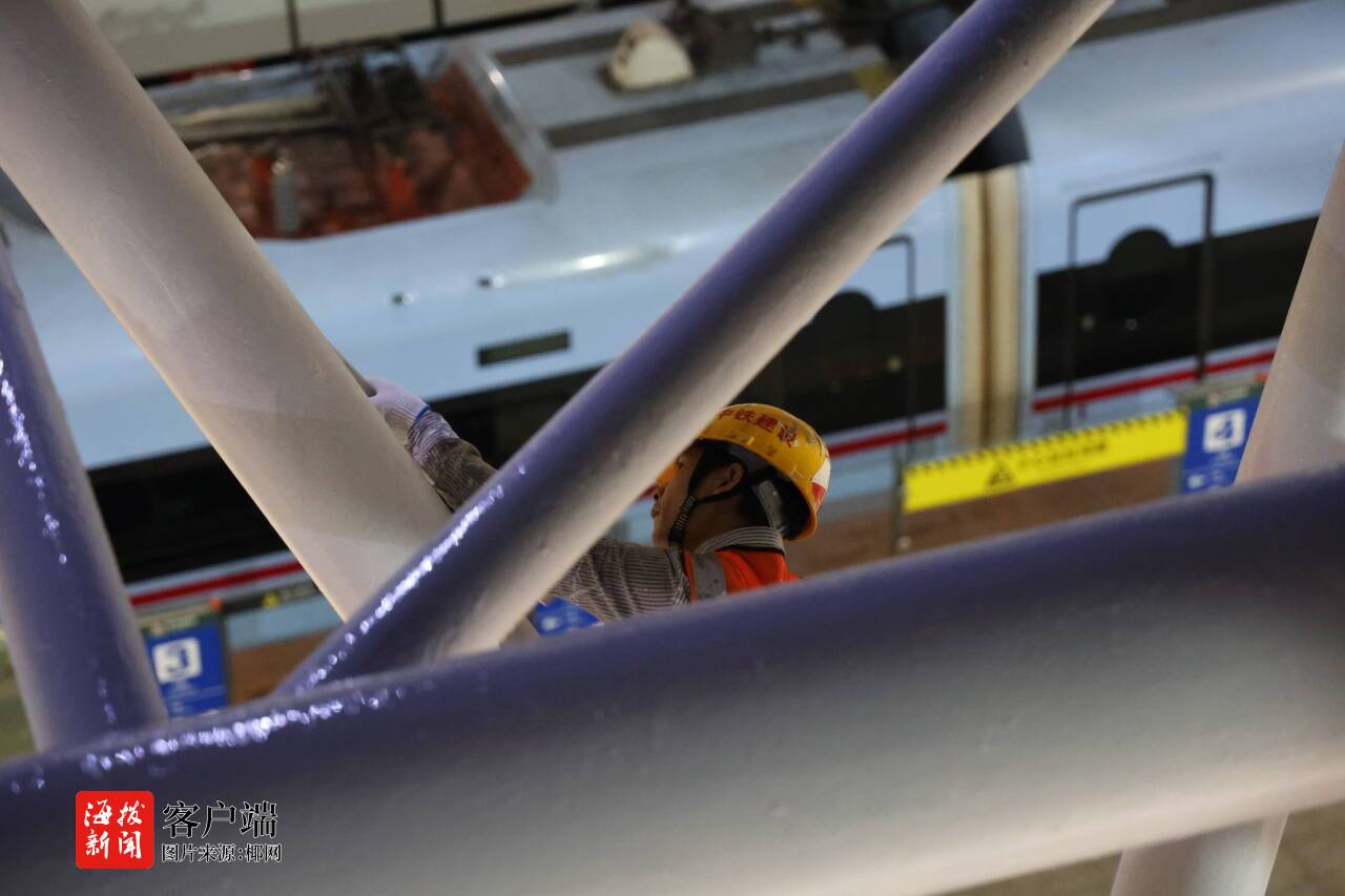 (椰网/海拔新闻记者 锋 通讯员 龙彬 拍摄报导)12月25日清晨,海南铁路海口房建公寓段完结海口东站站台钢结构雨棚除锈刷漆整治工程。项目历时约两个月,较原计划提早5个铁路天窗点竣工,累计整治面积达15000平方米,进步站台设备的安全性与漂亮度,以崭新面貌迎候海口东站注册运营15周年。